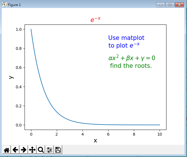 plt.text(6, 0.8,'Use matplot \n to plot $e^{-x}$', \