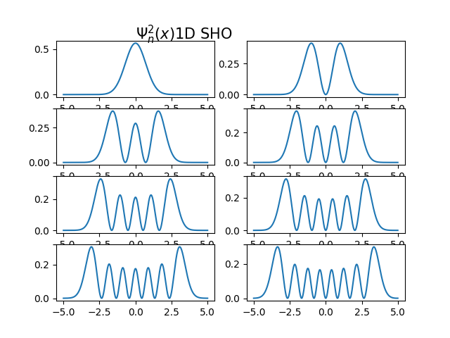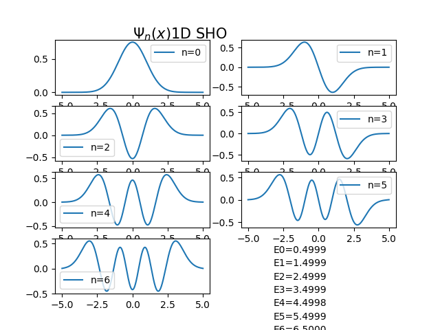 \[ \psi_{n}(x)=\frac{1}{\sqrt{2^{n} n!}} \cdot \left(\frac{m\omega}{\pi \hbar}\right)^{1/4} \cdot e^{-\frac {m\omega x^{2}}{2\hbar}} \cdot H_{n}\left( \sqrt{\frac{m\omega}{\hbar}}x\right) \]