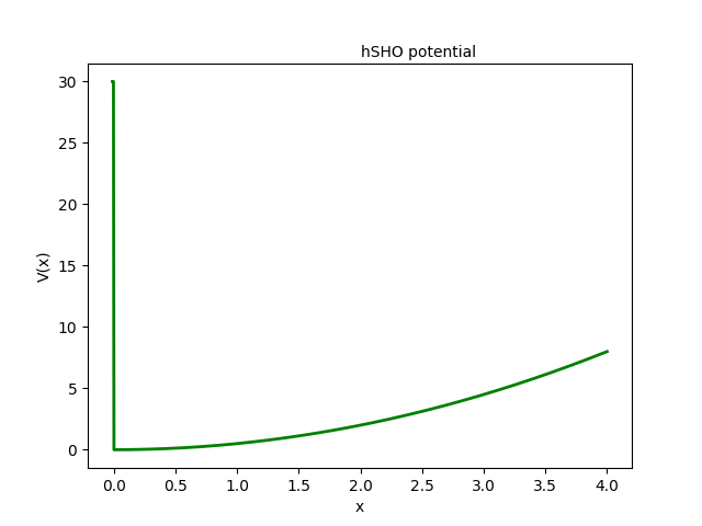 \[ V(x)=1/2 k x^2=1/2 m\omega^2 x^2, x \gt 0; V(x)=\infty, x \lt 0 \]