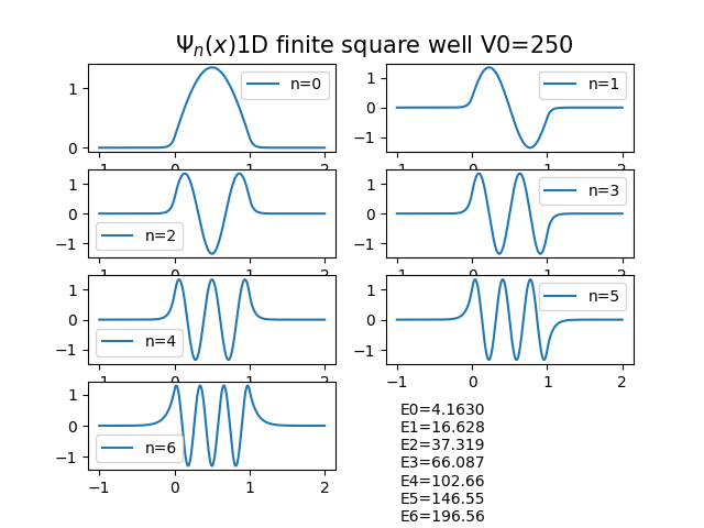 有限位能井:如果位能井的高度並不是無窮高,那麼邊界條件將要做適當的修正,請試著找出本徵能量以及本徵波函數