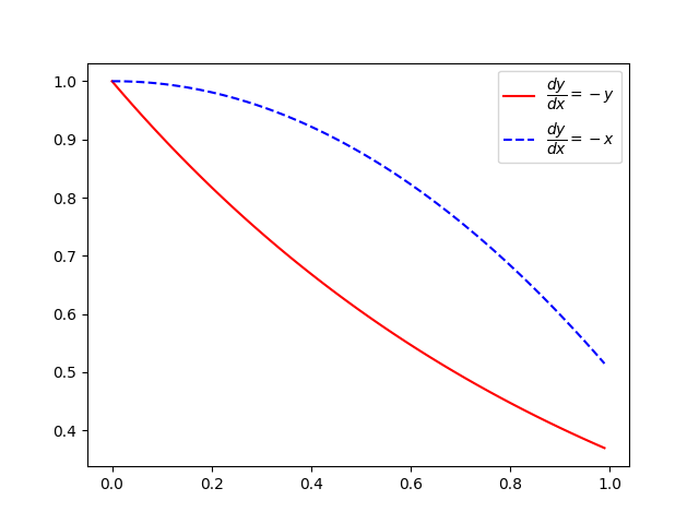 \(\frac{dy}{dx}=-y;\) \(\frac{dy}{dx}=-x;\)