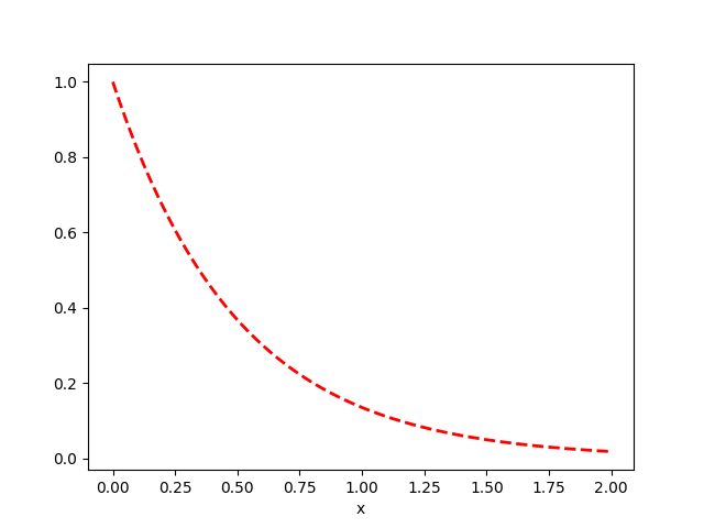 plt.plot(t,x1,'r--', linewidth=2.0, label=r"$\dfrac{dx}{dt}=-2x$")