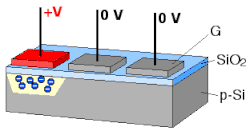 - 一旦電容陣列曝光,一個控制迴路將會使每個電容把自己的電荷傳給相鄰的下一個電容(傳感區域)。而陣列中最後一個電容裡的電荷,則將傳給一個電荷放大器,並被轉化為電壓訊號。通過重複這個過程,控制迴路可以把整個陣列中的電荷轉化為一系列的電壓訊號儲存,而儲存的影像可以傳送到印表機或顯示器。這些儲存的資訊又可以再用人工智慧或者影像分析軟體加以分析,抽取有用的資訊。