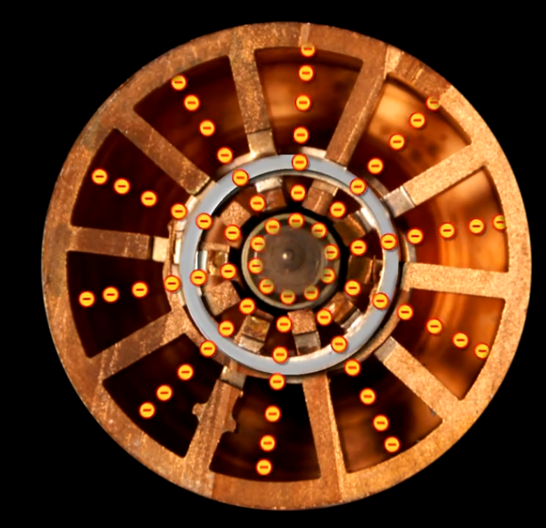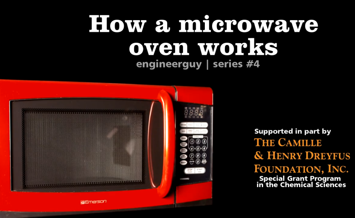 微波爐的實際工程在於製造能夠產生高能無線電波的磁控管,這是個奇妙與革命性的設備。真空管在這裡面,這些是散熱片,也就是能夠散熱的薄金屬片。關鍵部位是這兩個磁鐵和真空管,我有另一個,這樣你就可以看到裡面,你施加電壓於兩個內絲和外部的圓銅,此電壓使電子偏離中心燈絲,而朝圓銅部分移動。燈絲由鎢和釷製成,因為鎢它可以承受高溫,而釷是良好的電子源。磁鐵使這些電子路線彎曲,使它們回到中間絲。我們調整磁場強度以使軌道電子,刷過這些空腔的開口,像吹過一個半滿汽水瓶使其成為哨子。這將創建一個振盪波即加熱的微波輻射,令人驚訝的是這些腔具有精度高,成本低以及高可靠性。