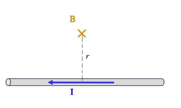 長直導線磁場(B)公式,電流 I_,距離 r,真空磁導率 μ_0: